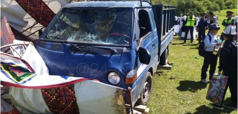 Інцидент стався під час заходу, на якому діти брали участь у читанні епосу «Манас». 48-річний водій залишив свою машину, з якої планували роздавати морозиво, без нагляду. Внаслідок цього вантажівка з’їхала з гори і врізалася в групу з сотень людей, більшість з яких були дітьми.