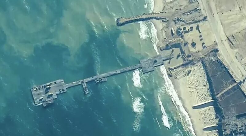В кінці квітня Сполучені Штати повідомили, що побудують плавучий пірс для доставки гуманітарної допомоги до Сектору Гази. Це рішення було ухвалене в контексті можливого вторгнення Ізраїлю в місто Рафах, куди втекло близько мільйона палестинських біженців. За кілька тижнів Міністерство оборони США повідомило про завершення будівництва пірсу, яке, за оцінками Пентагону, обійшлося США щонайменше у 320 мільйонів доларів.